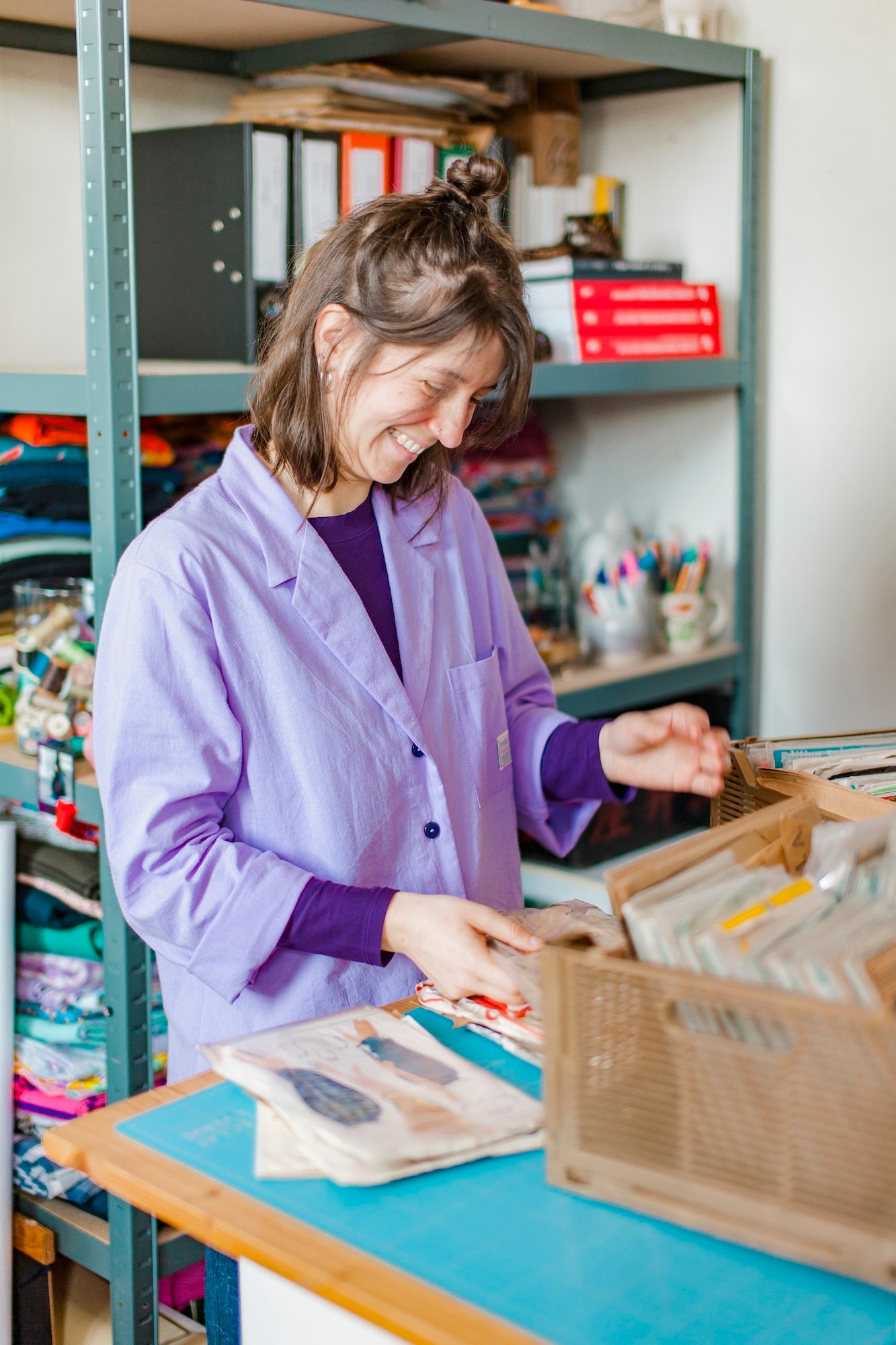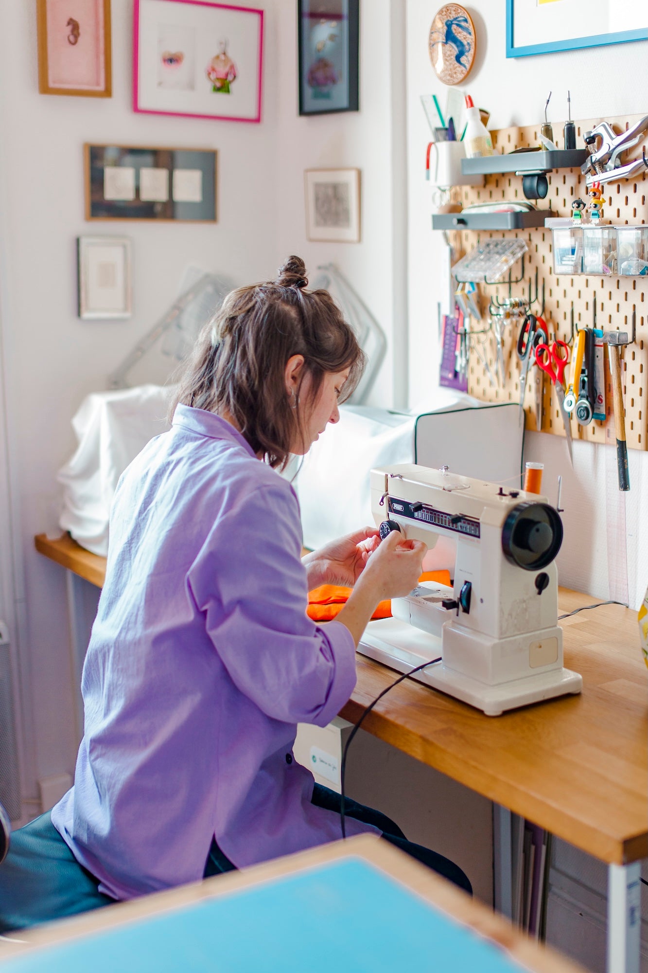 Je me suis formée en autodidacte, avec des vidéos, des livres (« Les bases de la couture » aux Éditions de Saxe et les livres DP Studio), puis en essayant, en me trompant, et en persévérant ! Une autodidacte pure et dure !