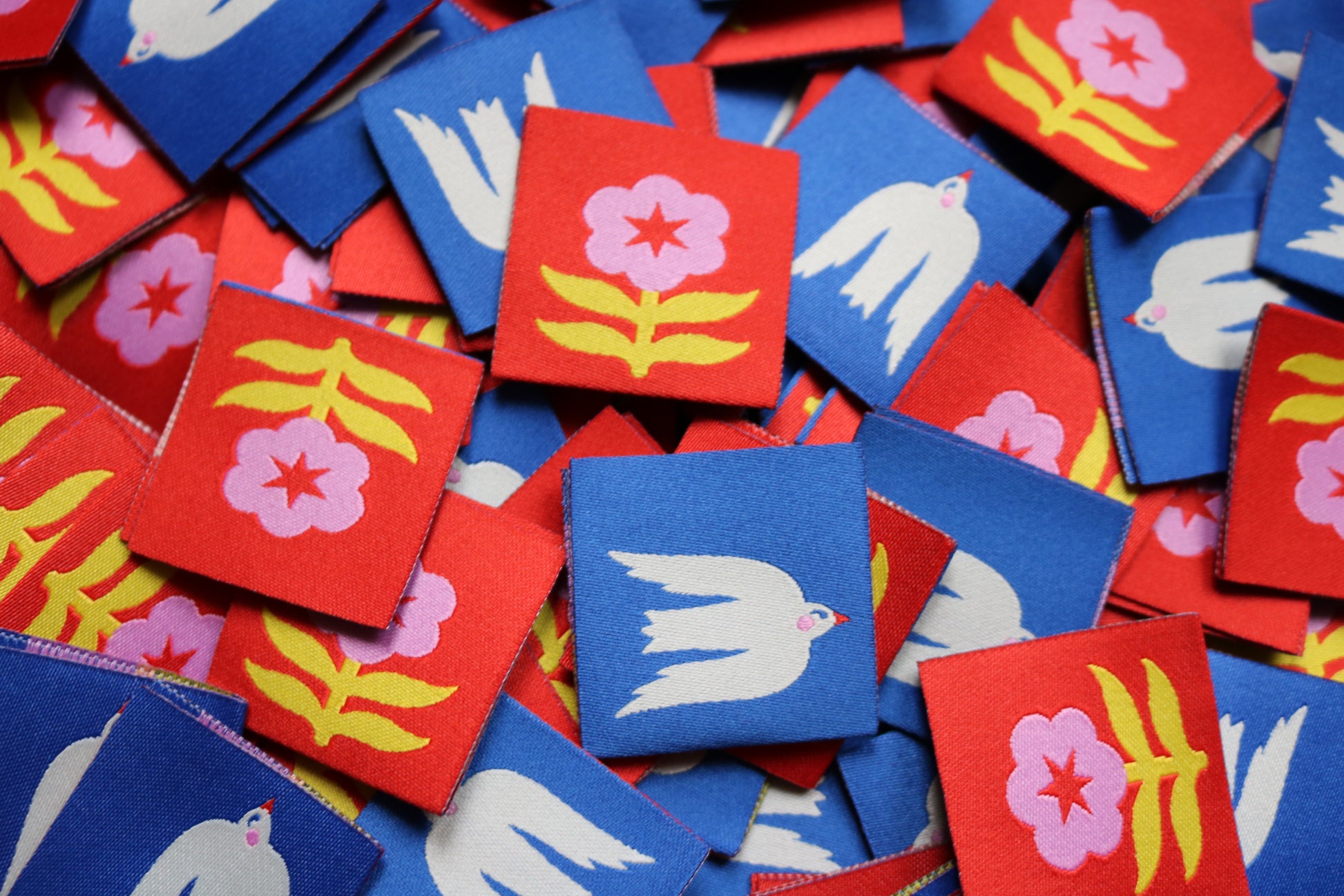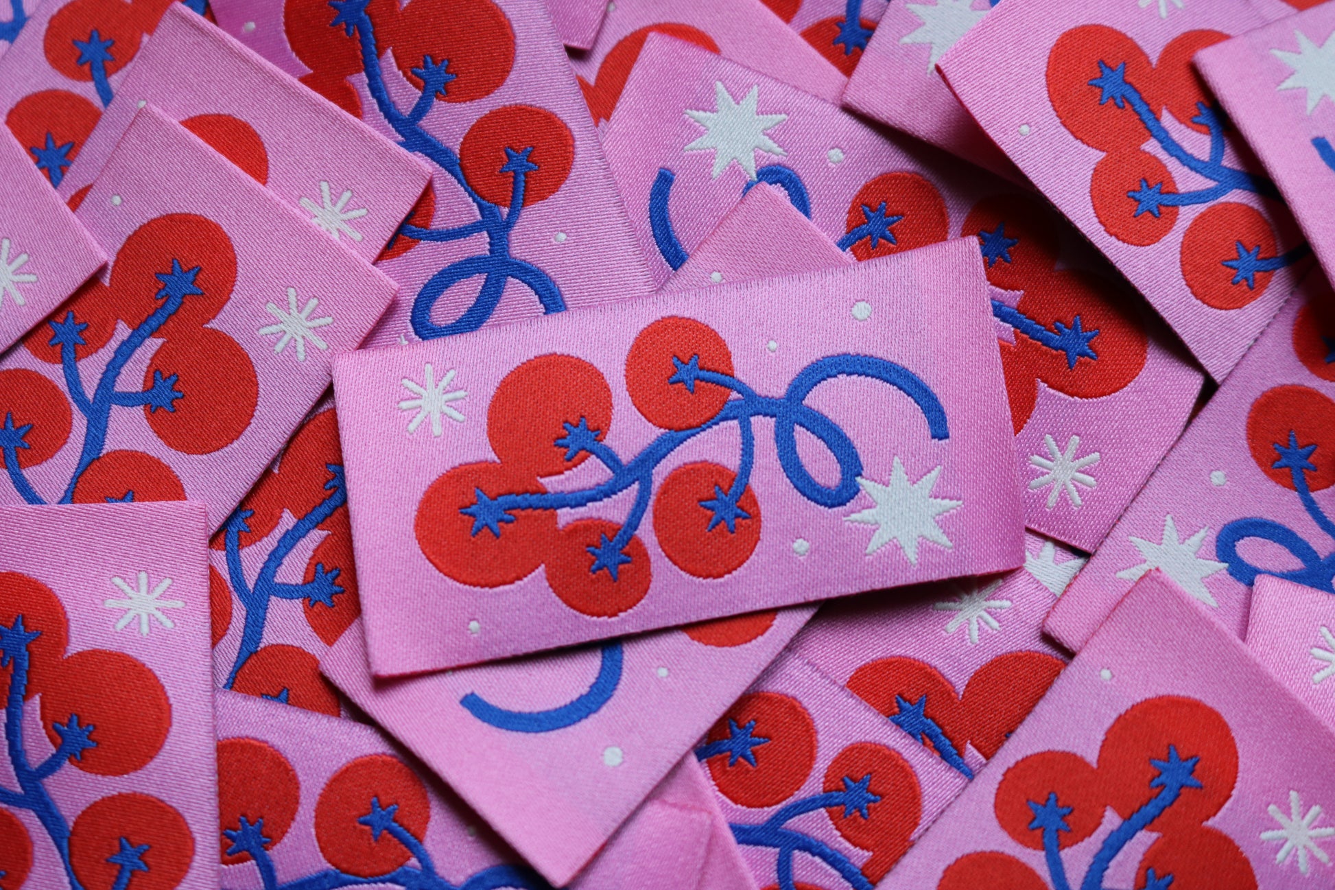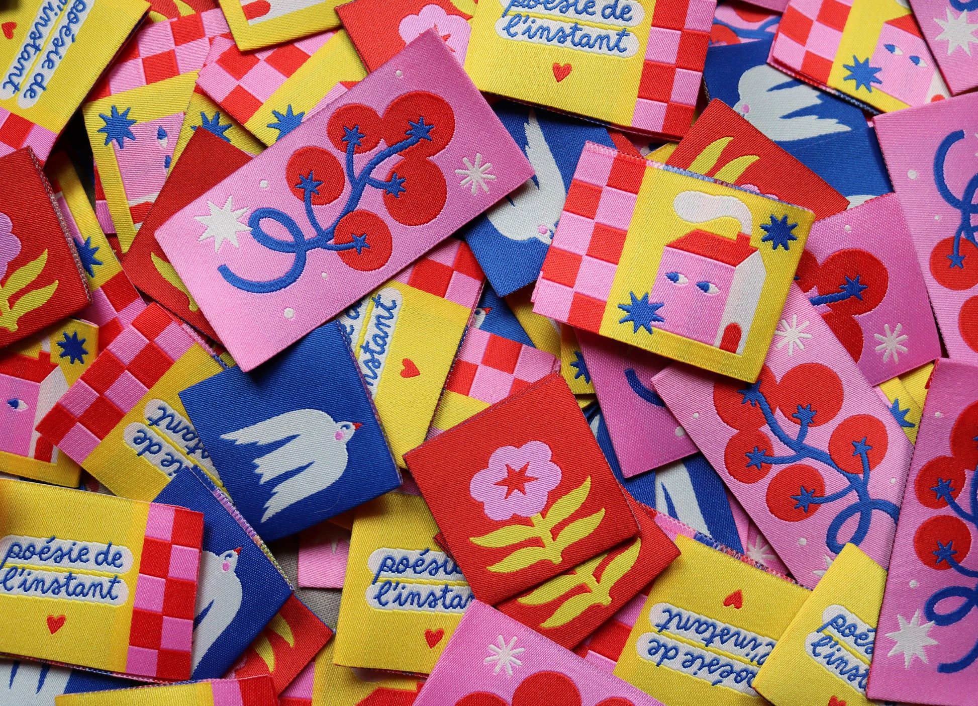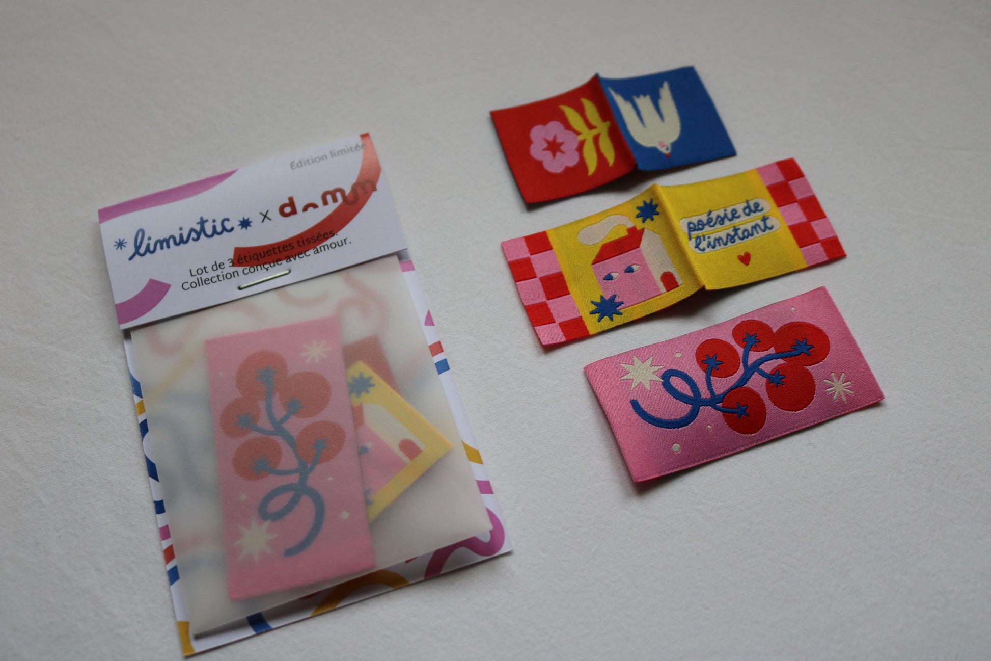 Série limitée d'étiquettes tissées à coudre de Création Domum en collaboration avec Limistic - Illustratrice freelance & créatrice.